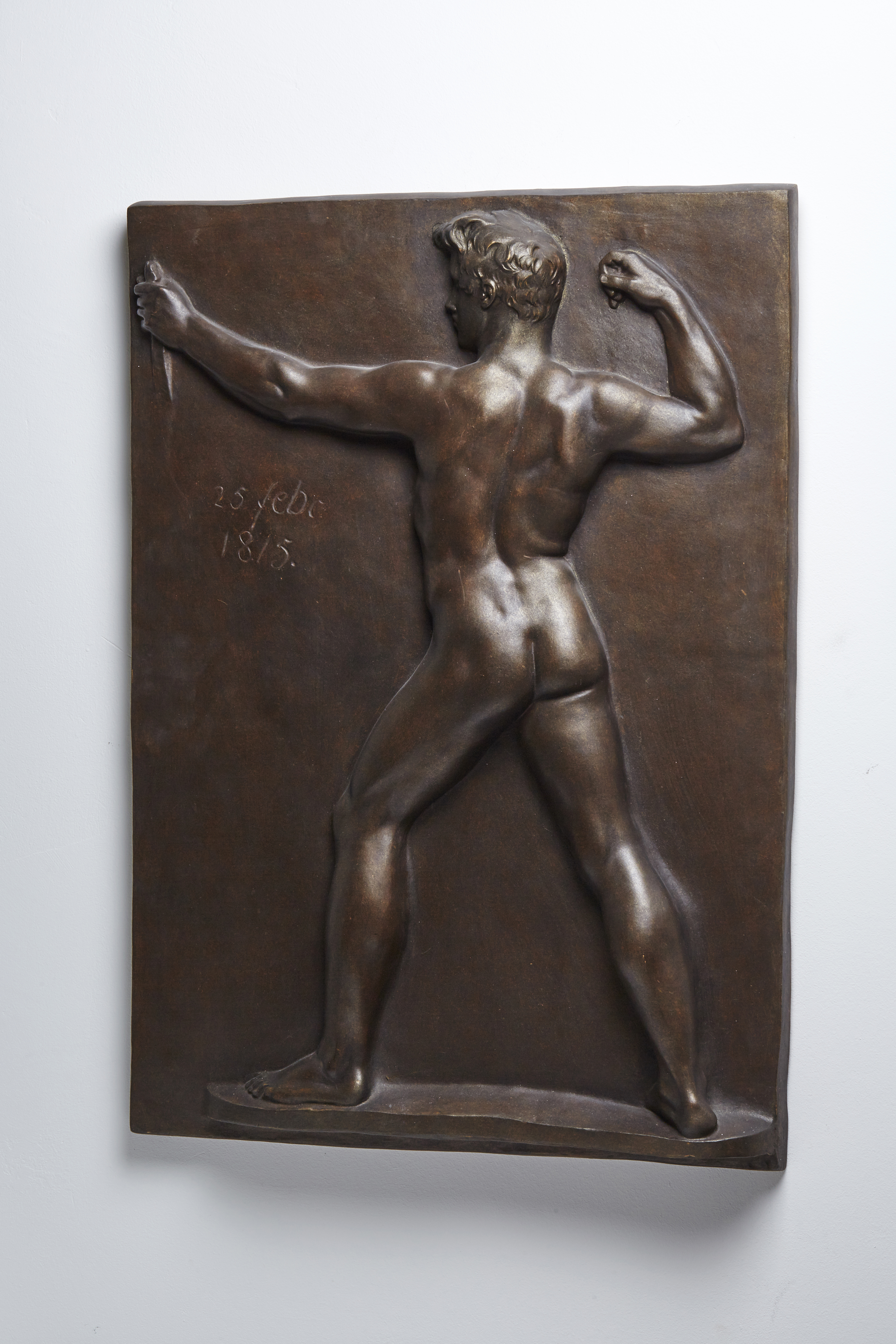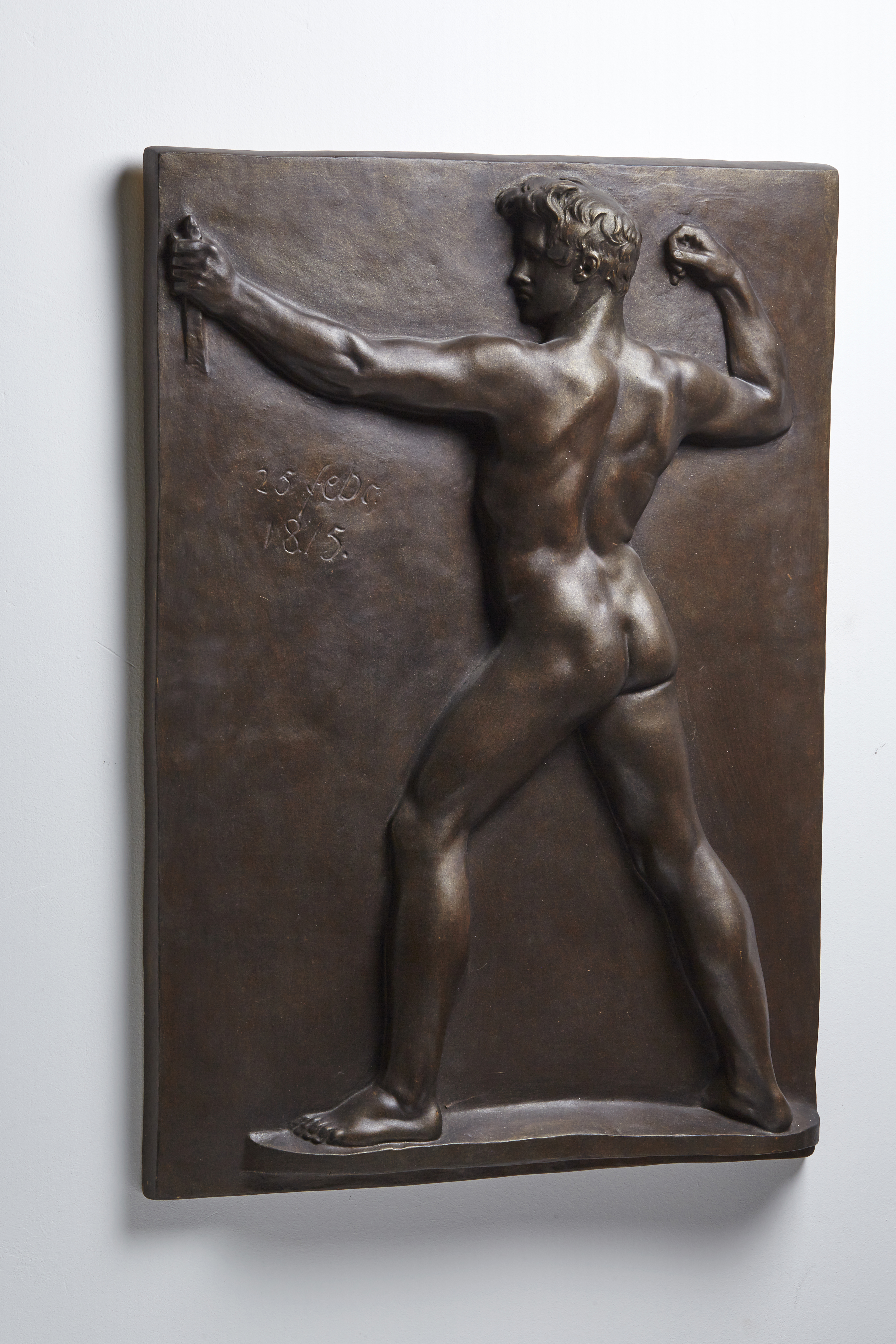 Der Athlet hat den linken Arm nach vorne gestreckt. In der Hand hat der Bildhauer Johann Gottfried Schadow gerade so viel vom Bogen angedeutet, dass der Grund dieser Haltung klar wird. Den Pfeil, den der Mann in der anderen Hand hält, muss man sich vollständig hinzudenken. So wird der Blick von der Erzählung abgelenkt und Körperhaltung und Anatomie betont. Ohne Auftrag geschaffen, kann die Relieftafel als Übung des Künstlers gelten, die er anschließend in der Durchfahrt seines Hauses aufhängte. Der Name des Modells ist überliefert, er hieß Joseph Baumann. Bei der Motivwahl war Schadow möglicherweise von den damals aufgefundenen und nach London gebrachten Tafeln des griechisch-antiken Parthenonfrieses angeregt worden.