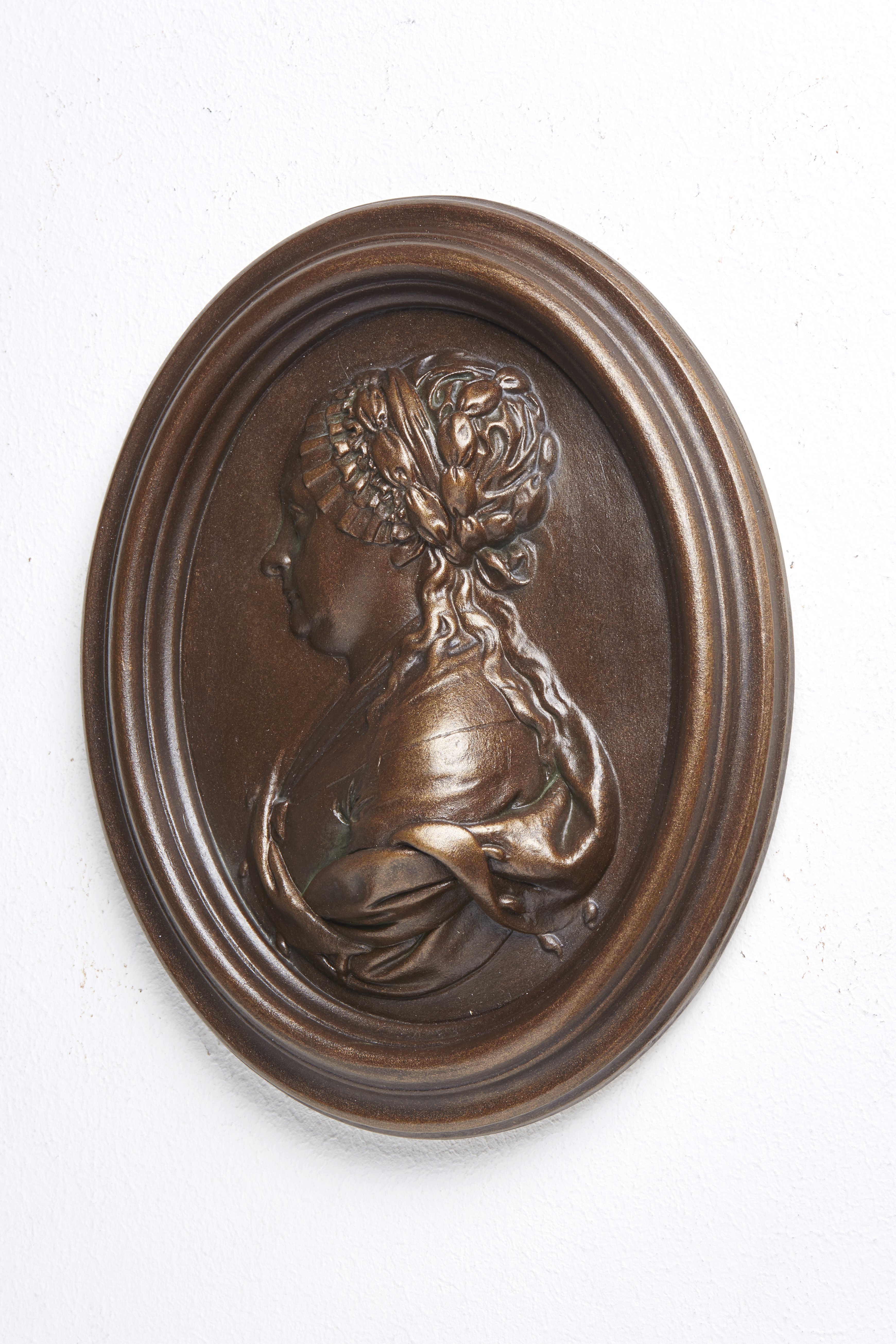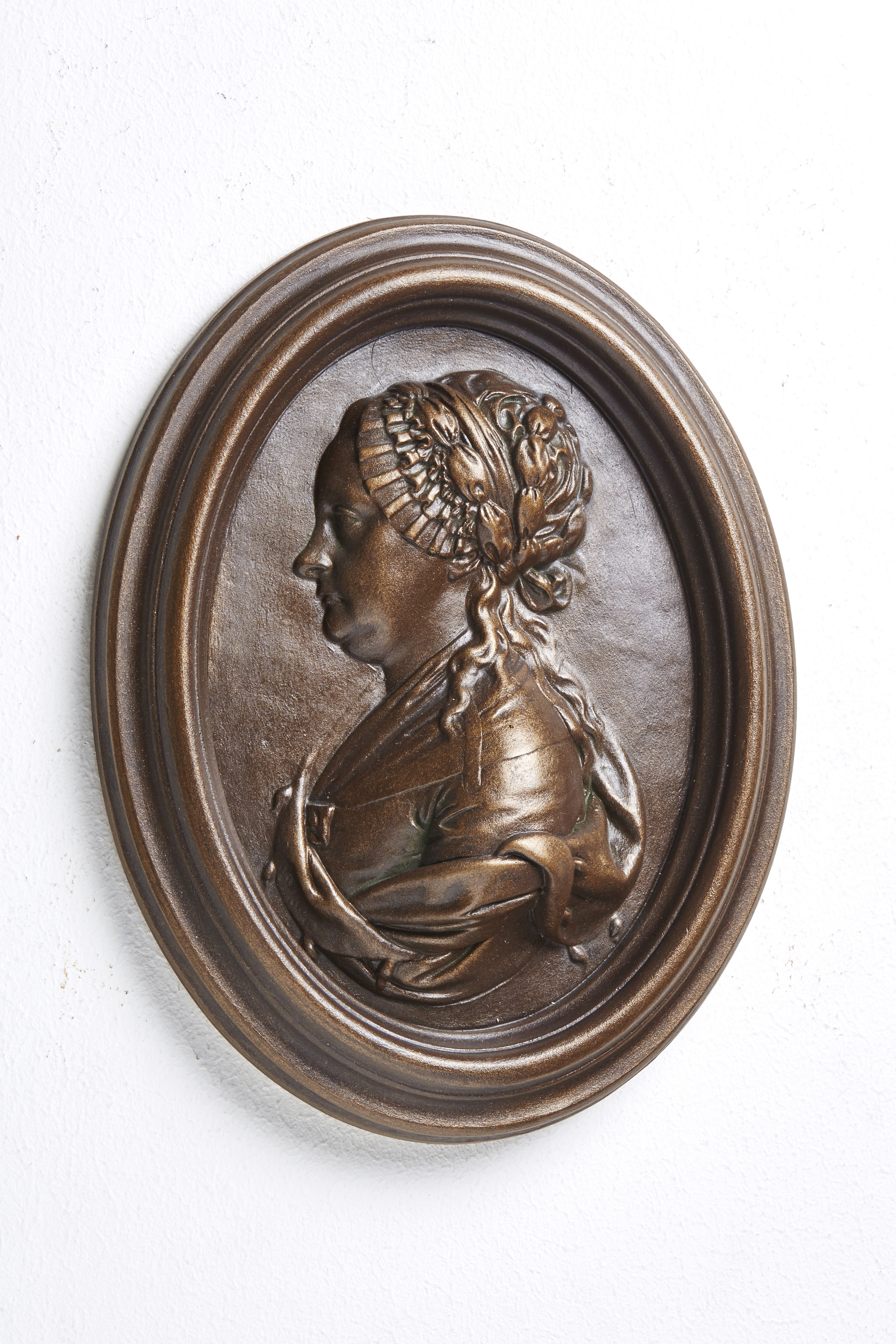 „Vom Vater hab ich die Statur / Des Lebens ernstes Führen / Vom Mütterchen die Frohnatur / Und Lust zu fabulieren“, schrieb Goethe in seinen „Zahmen Xenien“ über seine Eltern. Goethes Mutter wird als geistreich, warmherzig und witzig beschrieben. Der Künstler, Johann Peter Melchior, war in Frankfurt mit Goethe befreundet. Er schuf nicht nur das Porträt von Goethes Mutter, sondern auch Reliefbildnisse des Dichters und von Goethes Vater (Formnummern 5590 und 5591). Die Darstellung im Profil erinnert an die in jener Zeit populären Scherenschnitt-Silhouetten.