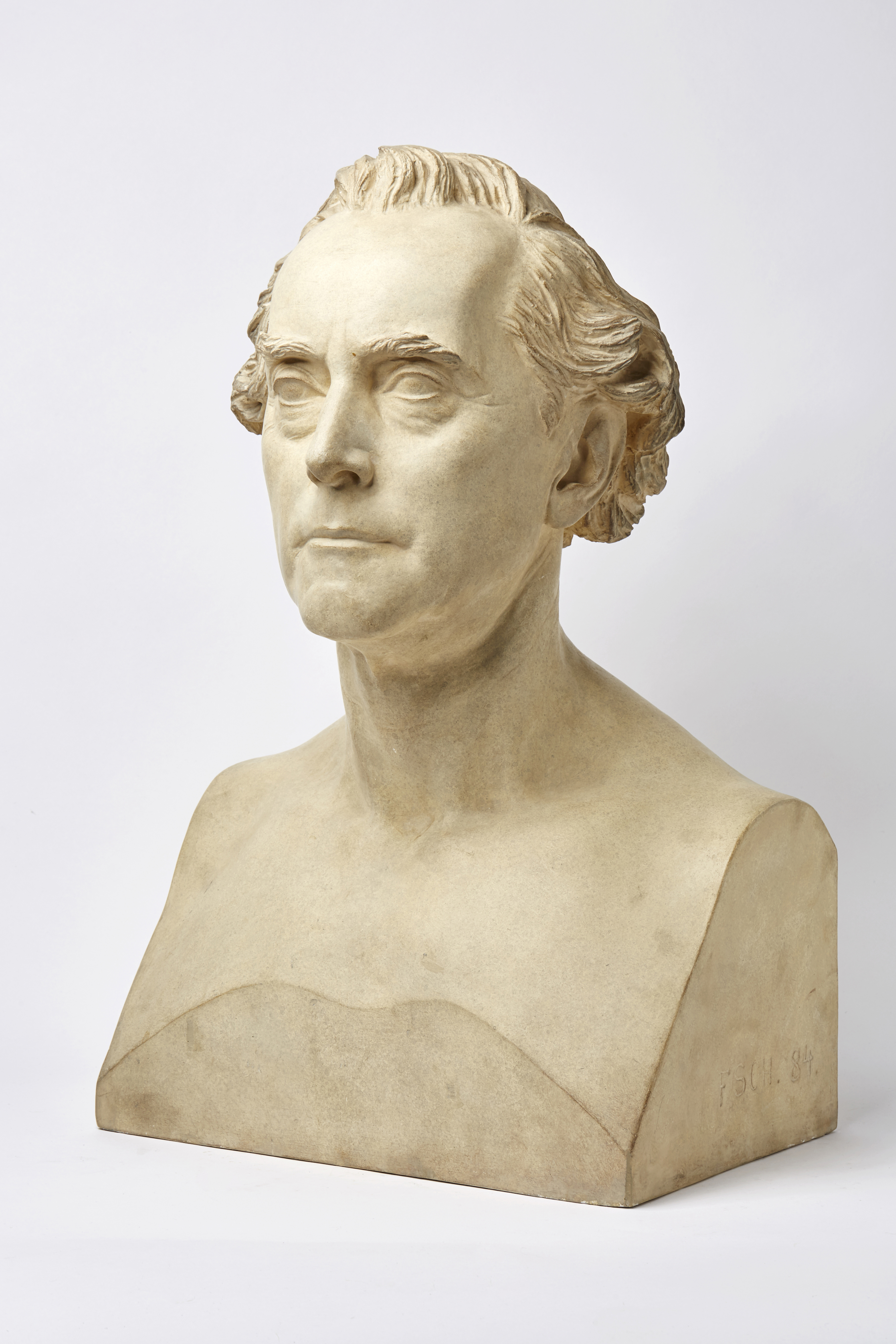 Freunde und Schüler des Archäologen und Historikers Ernst Curtius (1814–1896) gaben 1884 zum 70. Geburtstag beim Bildhauer Fritz Schaper diese Büste in Auftrag. Zu jener Zeit war Curtius Direktor der Königlichen Museen in Berlin und genoss als Ausgräber von Olympia einen hervorragenden Ruf in der Fachwelt. Die Büste zeigt ihn in mittlerem Alter, porträtähnlich und doch mit einem idealisierenden Zug versehen. Unsere Form stammt aus den Beständen der Berliner Firma Micheli, die am Ende des 19. Jahrhunderts Abgüsse der Büste in Gips und Elfenbeinmasse in ihren Angebotslisten hatte.