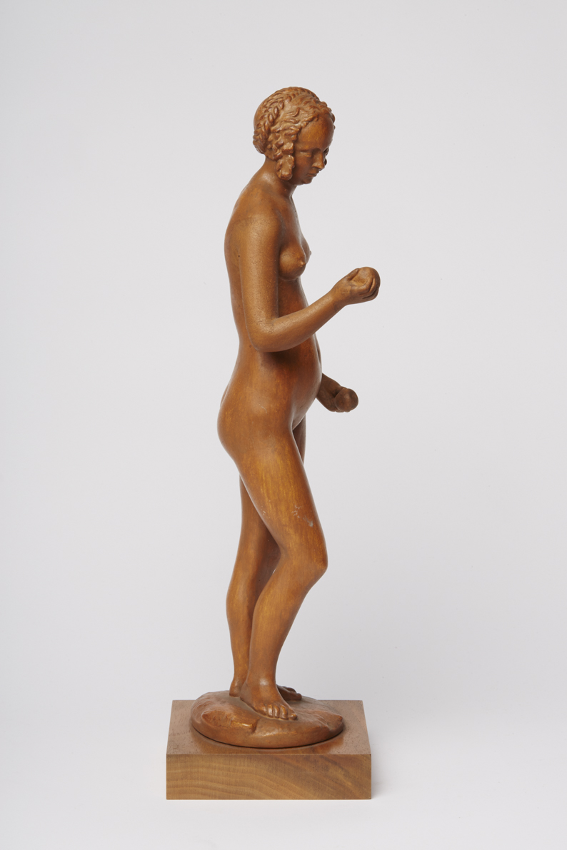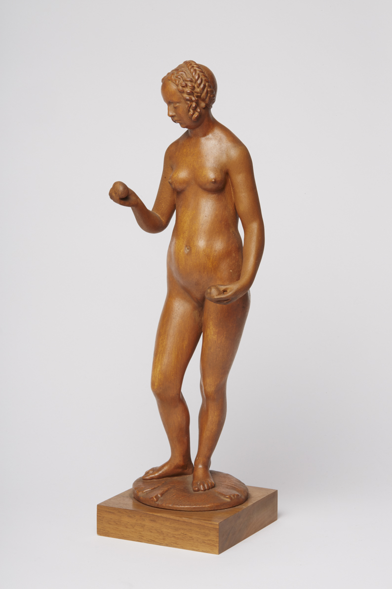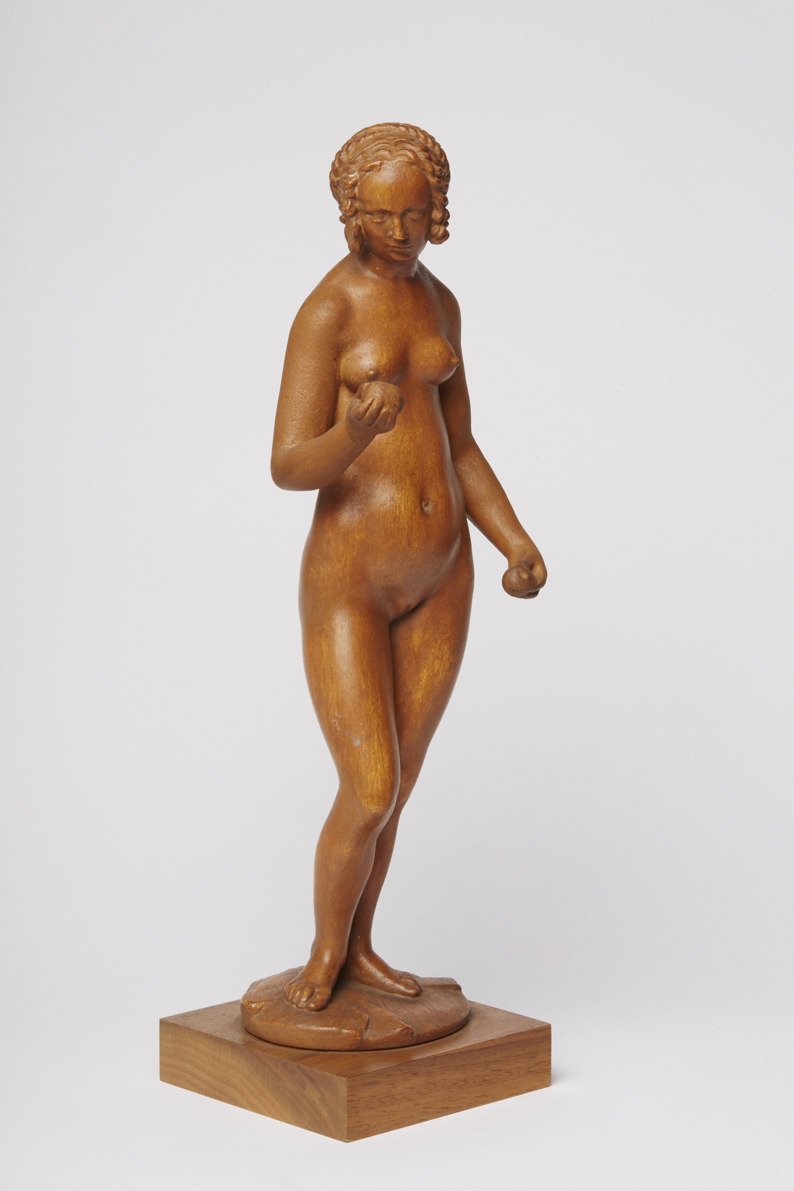 Die Kunst der Renaissance schätzte die Geschichte von Adam und Eva nicht zuletzt als Möglichkeit, den nackten menschlichen Körper darstellen zu können. Die beiden Figuren von Conrad Meit – das Pendant des Adam hat die Formnummer R-04443 – aus dem Gothaer Museum gehören dementsprechend zu den frühen Beispielen freistehender Aktskulpturen. Die Originale schnitzte Meit aus dem harten und wegen seiner Ebenmäßigkeit besonders geschätzten, aber auch teuren Buchsbaumholz. In der zugewandten Haltung und dem Redegestus ließ er sich von Dürers berühmtem Kupferstich aus dem Jahr 1504 inspirieren. Vermutlich entstanden sie zu jener Zeit, in der Meit als Mitarbeiter Lucas Cranachs in Wittenberg tätig war.