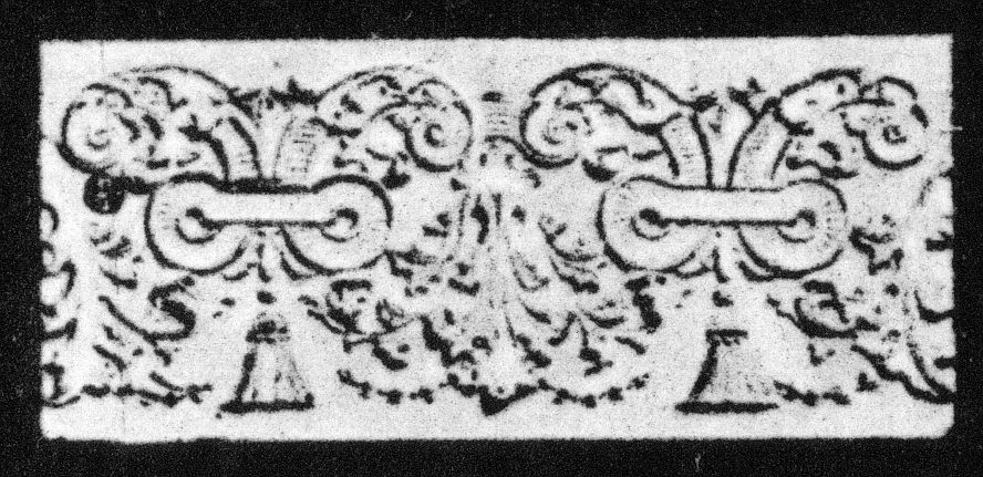 Objektinformationen "Fries mit Bändern und Blattornament und Quasten"