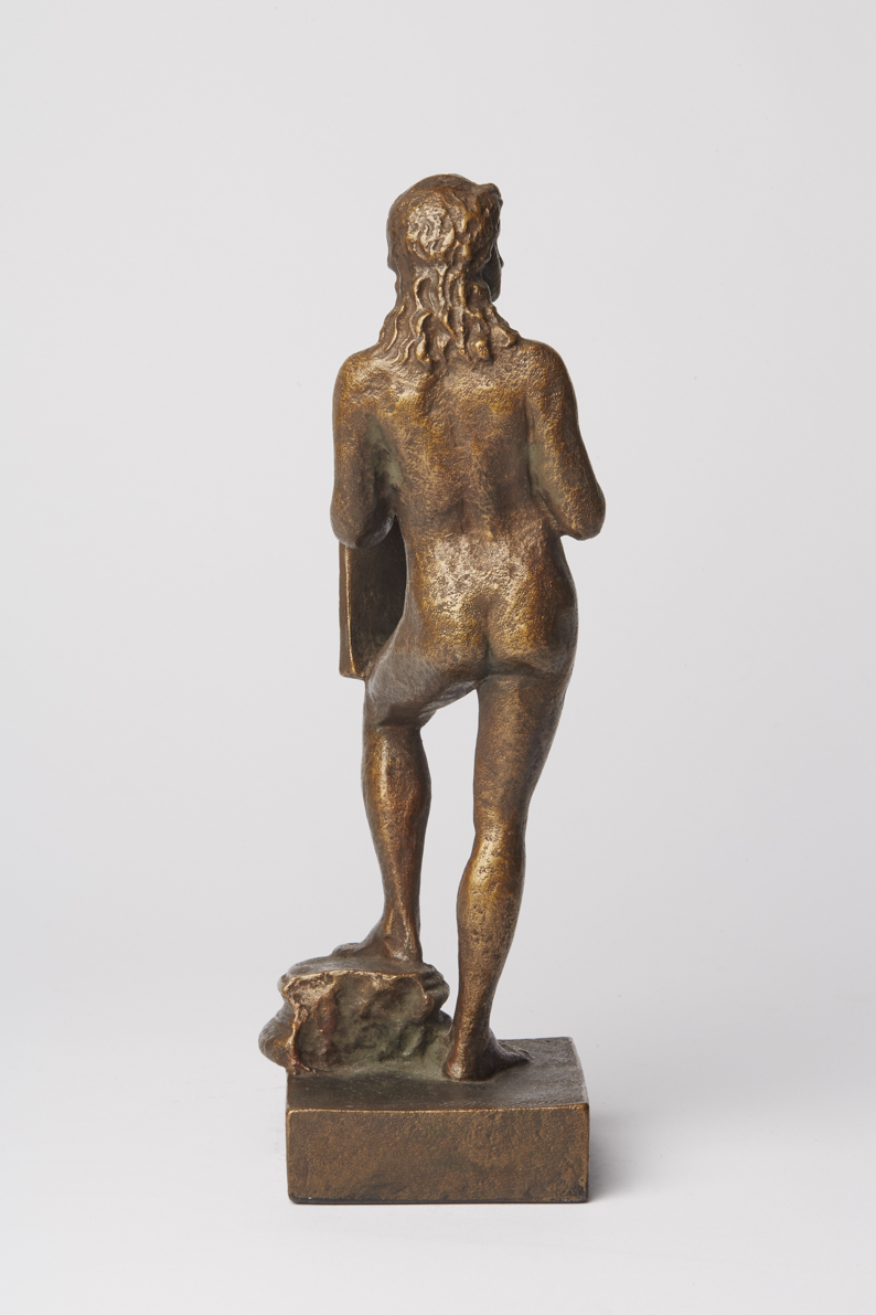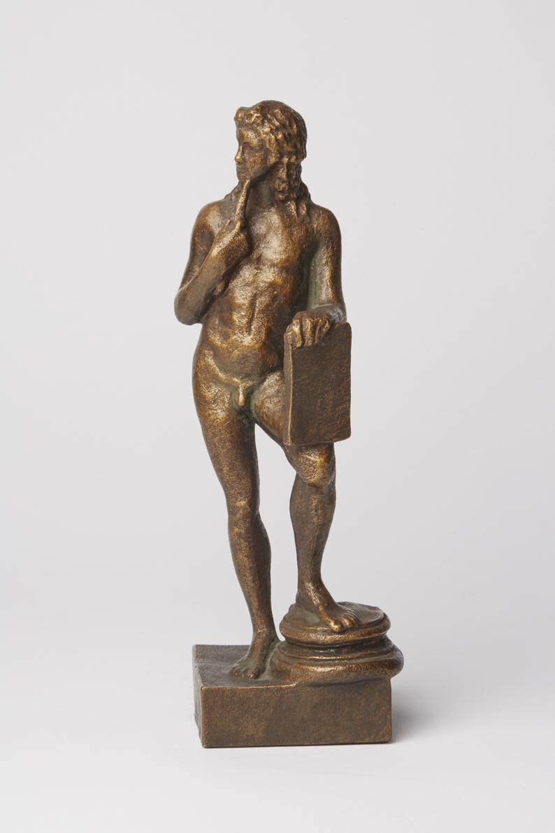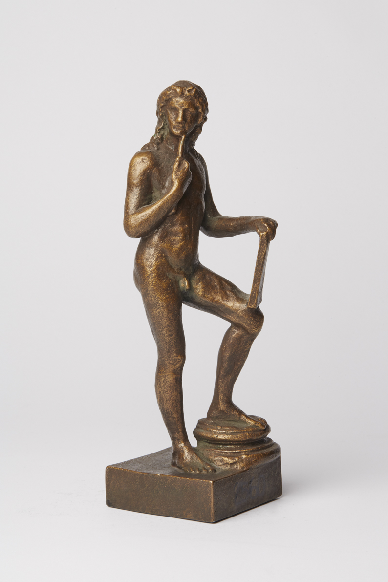 Sinnend blickt der nackte junge Mann in die Ferne: Es ist der mit Stift und Zeichenbrett versehene Prototyp eines Künstlers. Da nach Schadows Auffassung alle Kunst auf dem Vorbild der Antike basieren sollte, ließ er den jungen Mann seinen linken Fuß auf eine Säulenbasis stellen. Die kleine Figur modellierte er im Original aus Wachs. Es handelte sich um eine Studie für ein Auftragswerk – er sollte für einen Frankfurter Salzinspektor einen Figurenzyklus schaffen, zu dem neben der „Kunst“ auch die (ebenfalls überlieferte) „Natur“ sowie „Tugend“ und „Frieden“ gehören sollten. Die beiden erhaltenen Wachsmodelle feierte bereits Theodor Fontane als „kleine Meisterwerke“ aus der „besten Zeit“ des Künstlers.