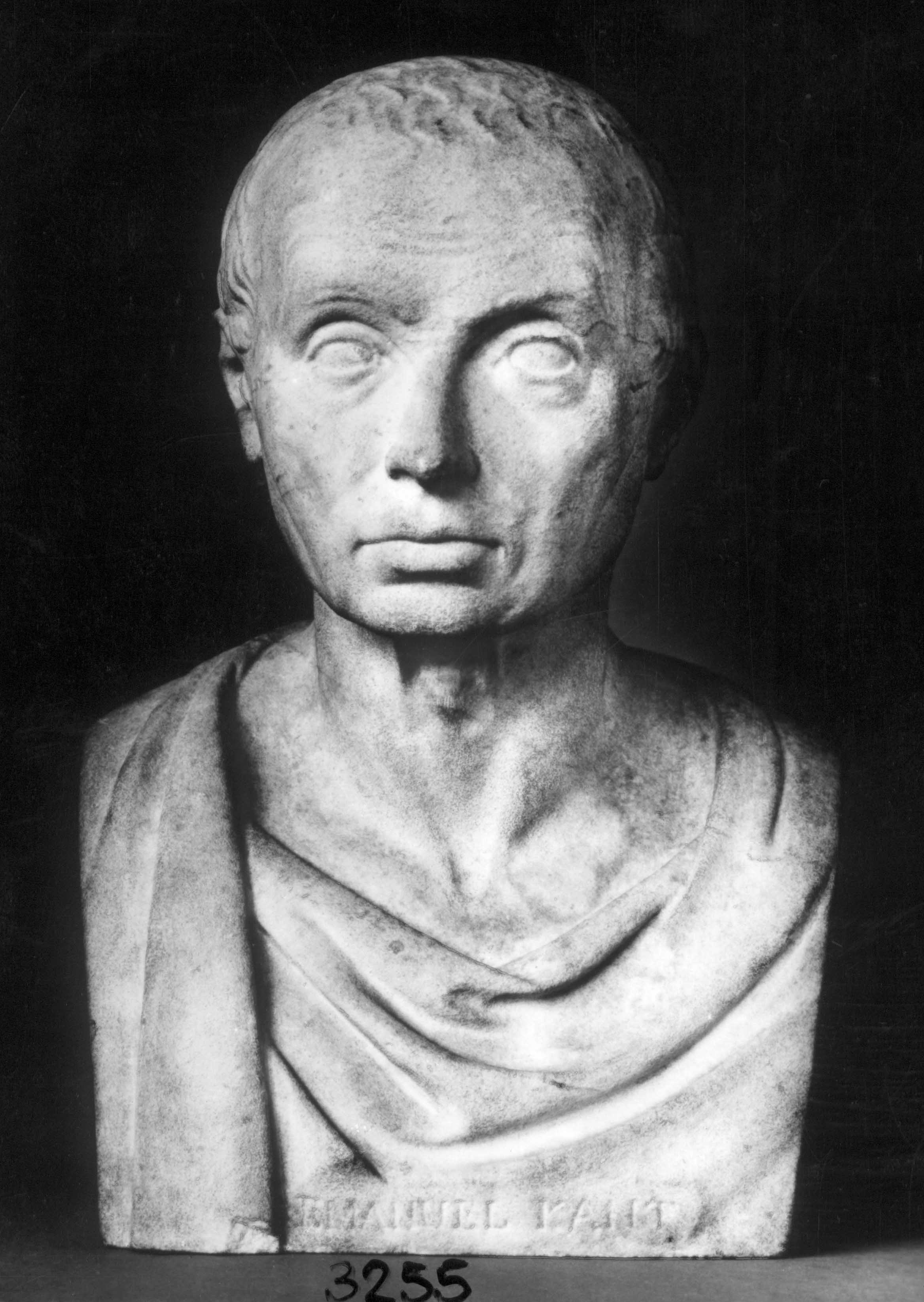 Immanuel Kant, der bedeutendste deutsche Philosoph des 18. Jahrhunderts, erscheint im römisch-republikanischen Habitus. Die Berliner Büste ist das einzige Bildnis Kants, das den Philosophen nicht in der Tracht und der Zopffrisur des Rokoko zeigt, sondern statt dessen auf die Antike zurückgreift. Ursprünglich sollte die Büste auf einer Herme im Kreise anderer Philosophen stehen, gelangte jedoch in die Werkstatt des Bildhauers Christian Daniel Rauch, der sie auf einer Säule im Freien aufstellte. Sie diente ihm als Vorlage für dessen Statue Kants am Reiterdenkmal Friedrichs des Großen das Unter den Linden aufgestellt ist und für das Kantdenkmal in Königsberg.