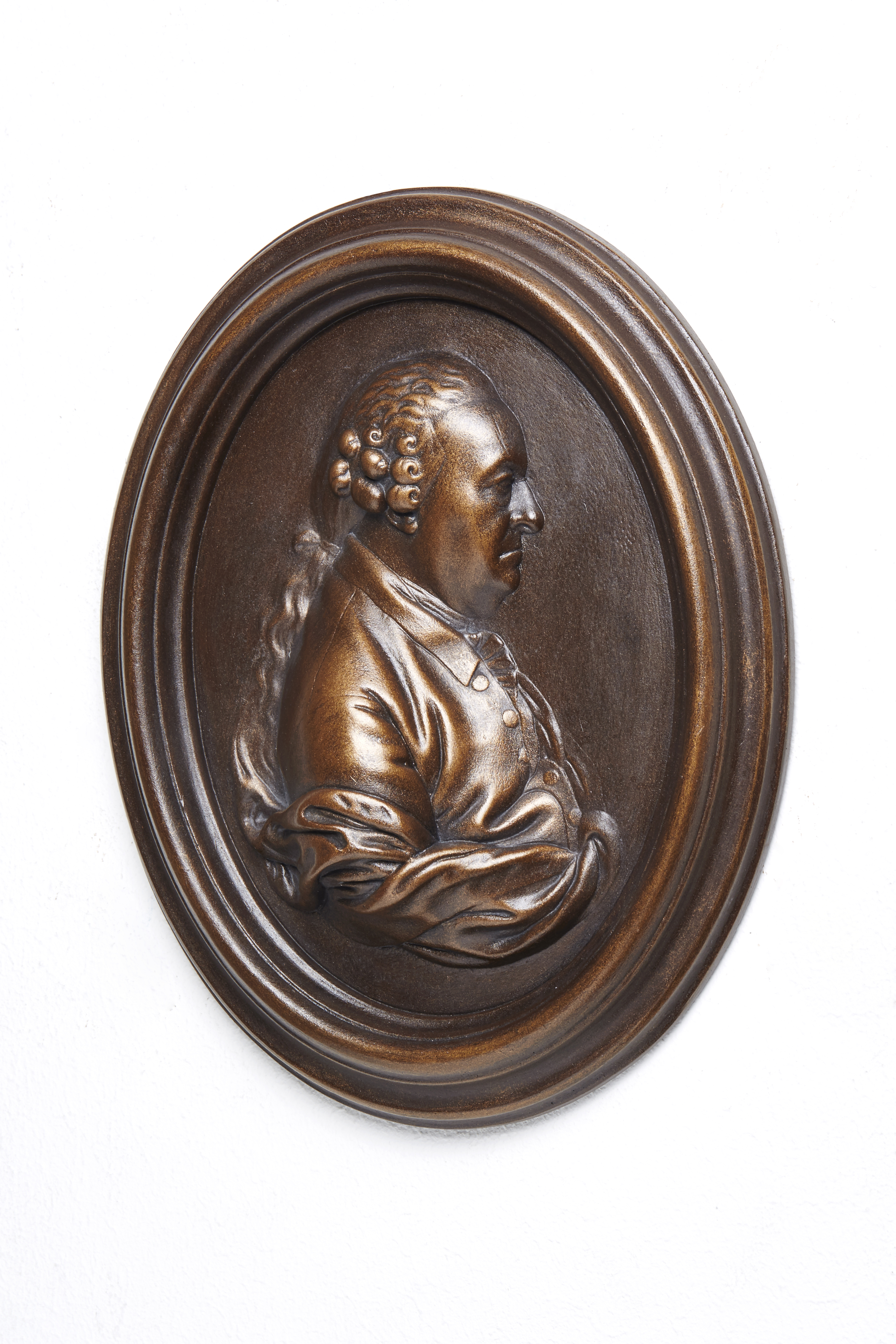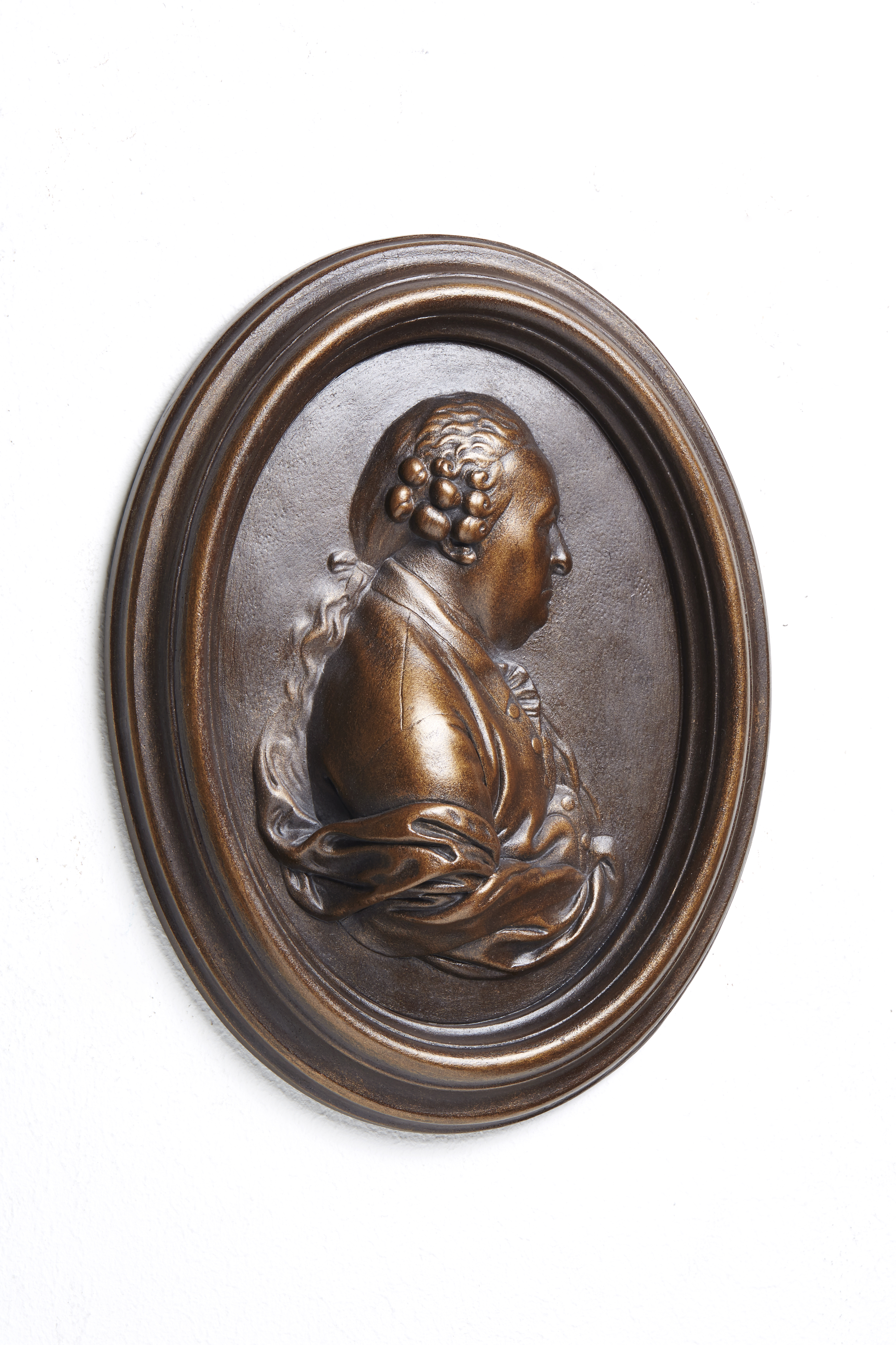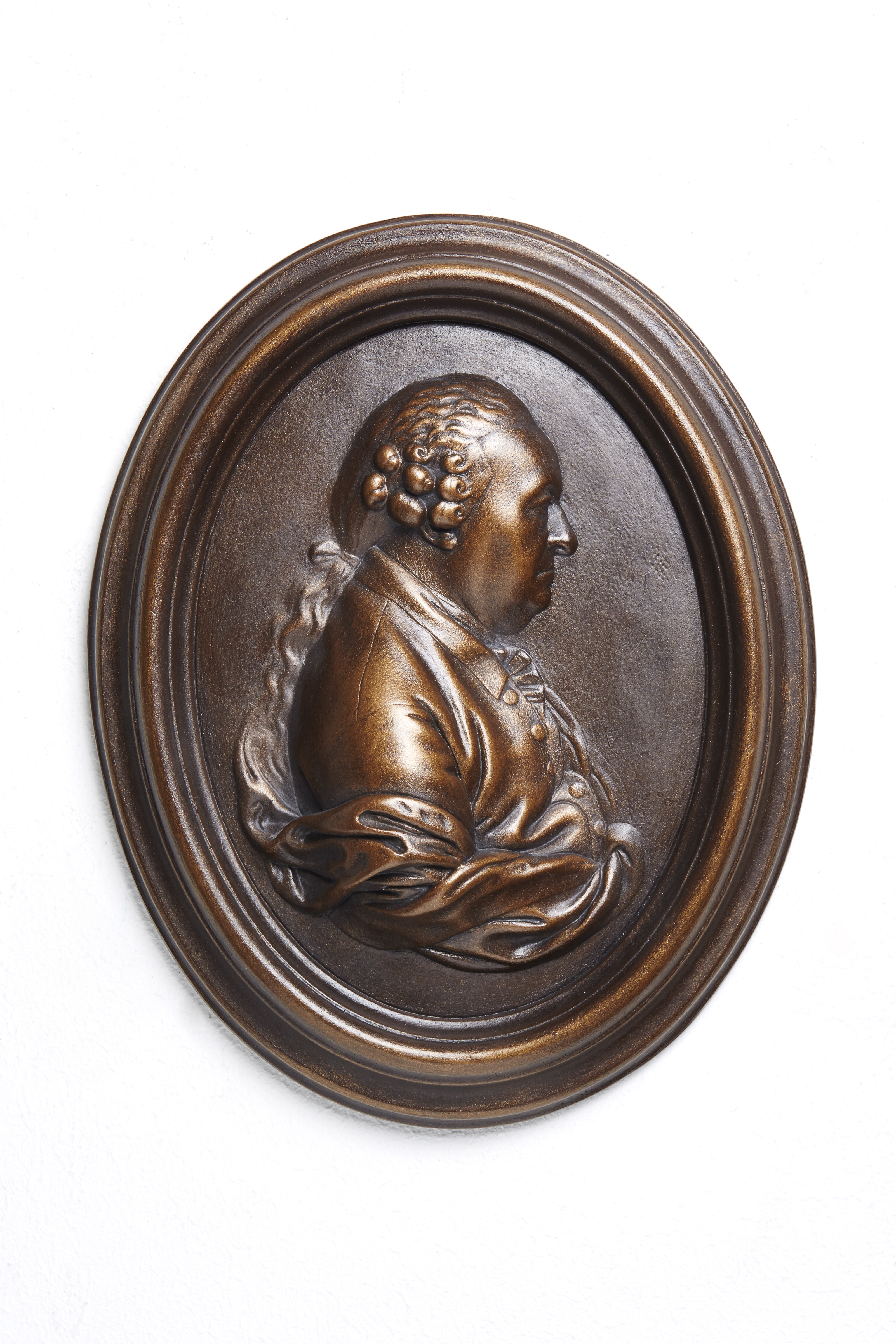 „Vom Vater hab ich die Statur / Des Lebens ernstes Führen / Vom Mütterchen die Frohnatur / Und Lust zu fabulieren“, schrieb Goethe in seinen „Zahmen Xenien“ über seine Eltern. Der Vater hatte für Goethe eigentlich andere, konventionellere Berufspläne gehabt. Den Erfolg des Sohnes erlebte er nur in den Anfängen, denn er starb bereits 1782 nach langem Siechtum. Der Künstler, Johann Peter Melchior, war in Frankfurt mit Goethe befreundet. Er schuf nicht nur das Porträt von Goethes Vater, sondern auch Reliefbildnisse des Dichters und von Goethes Mutter (Formnummern 5590 und 5592). Die Darstellung im Profil erinnert an die in jener Zeit populären Scherenschnitt-Silhouetten.
