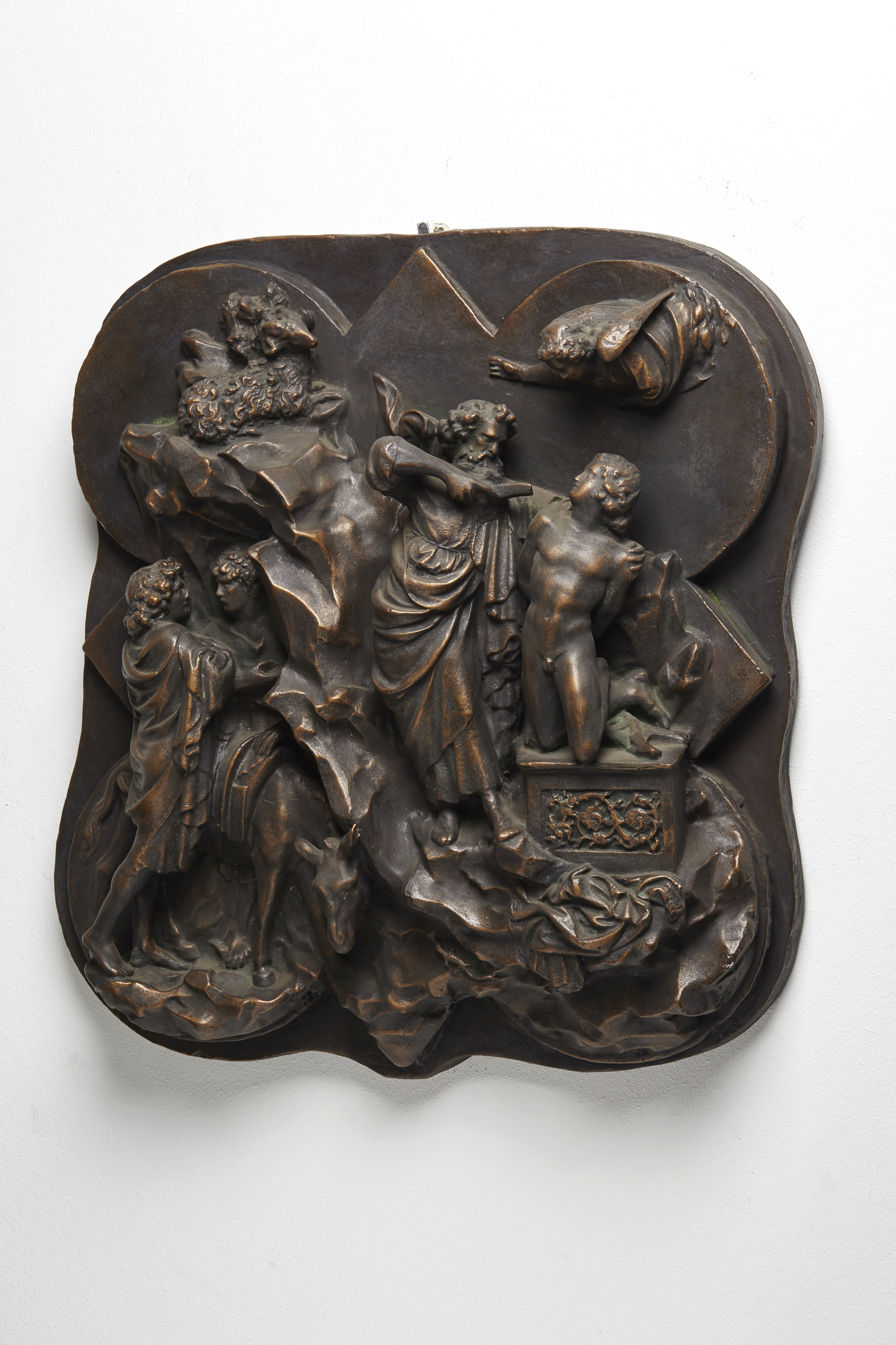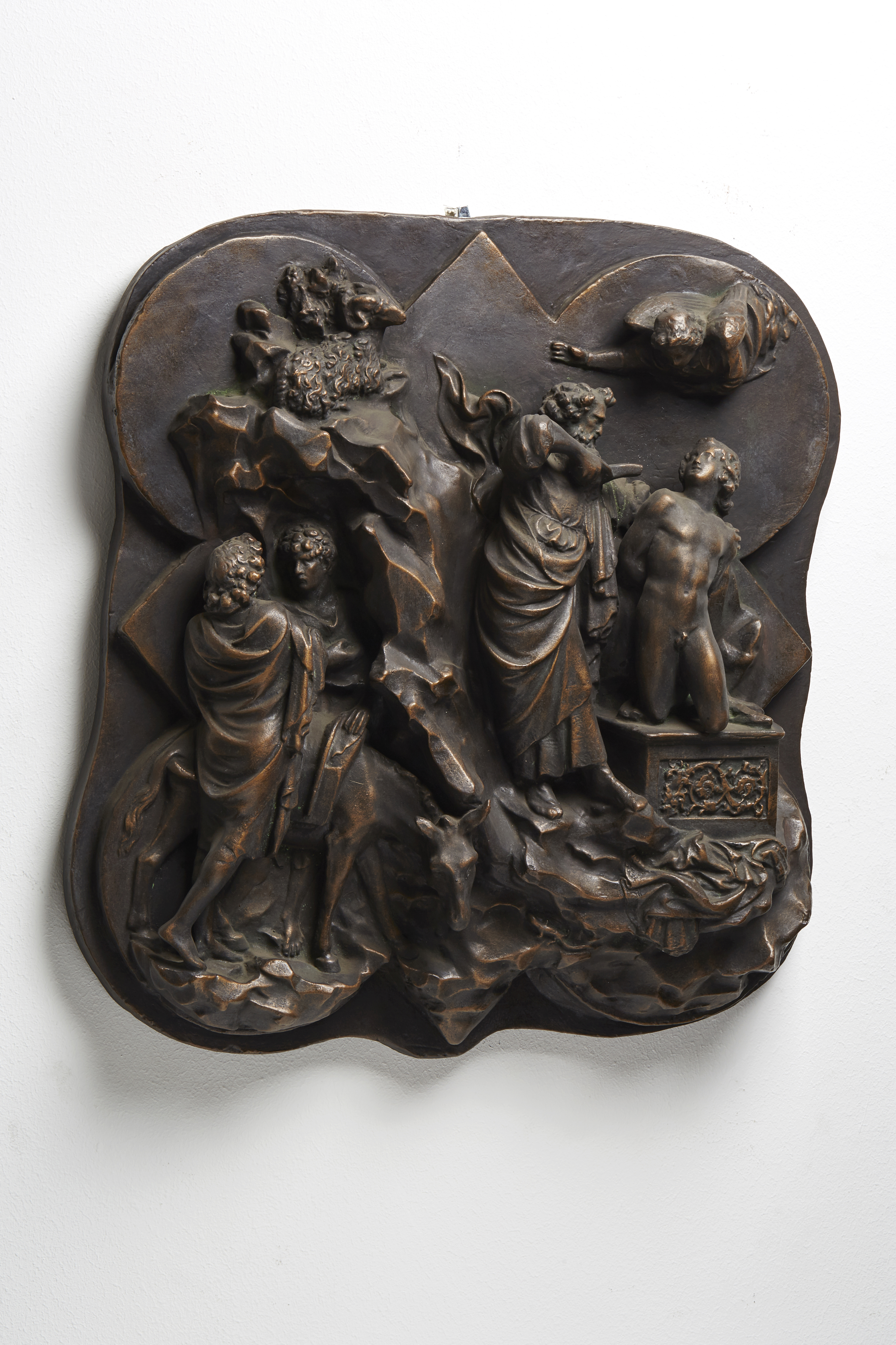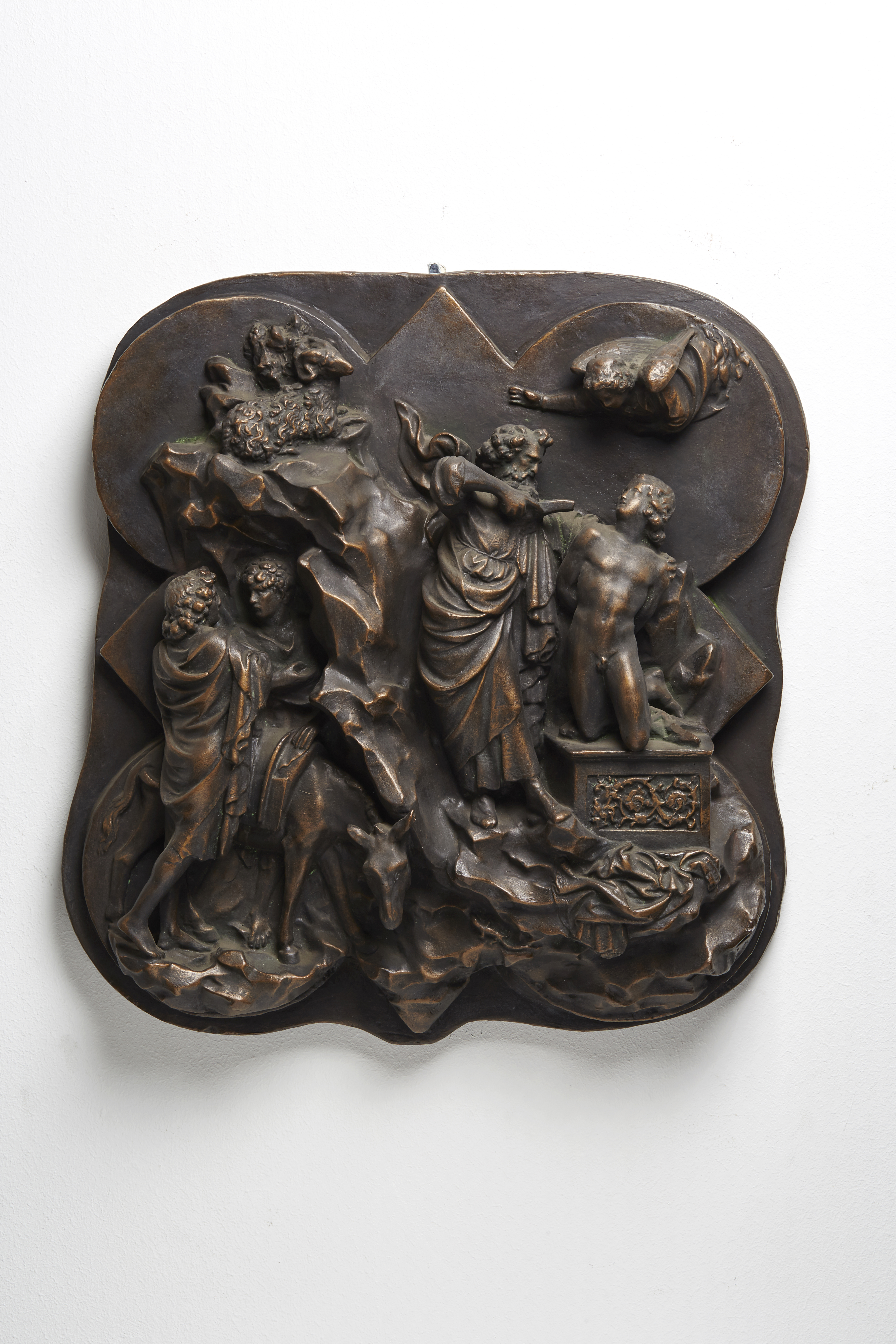 Ein Meisterwerk der Frührenaissance und zugleich das Dokument eines der berühmtesten Wettstreite in der Geschichte der Kunst: 1401 traten Ghiberti und Filippo Brunelleschi mit je einem Relief zum selben Thema – dem Opfer Abrahams – gegeneinander an. Der Sieger sollte die Bronzetür der Taufkirche des Domes in Florenz ausführen. Ruhig und klassisch schön steht Abraham da, sein Isaak ist ein antikischer Jüngling, der sich heldenhaft seinem Schicksal ergibt. Für diese meisterlich in das ungewöhnlich geformte Bildfeld eingepasste Komposition erhielt er den Auftrag. Doch bis heute scheiden sich die Geister, ob seines oder das naturalistische Werk seines Konkurrenten (Formnummer 2601) den Sieg verdient hatte.