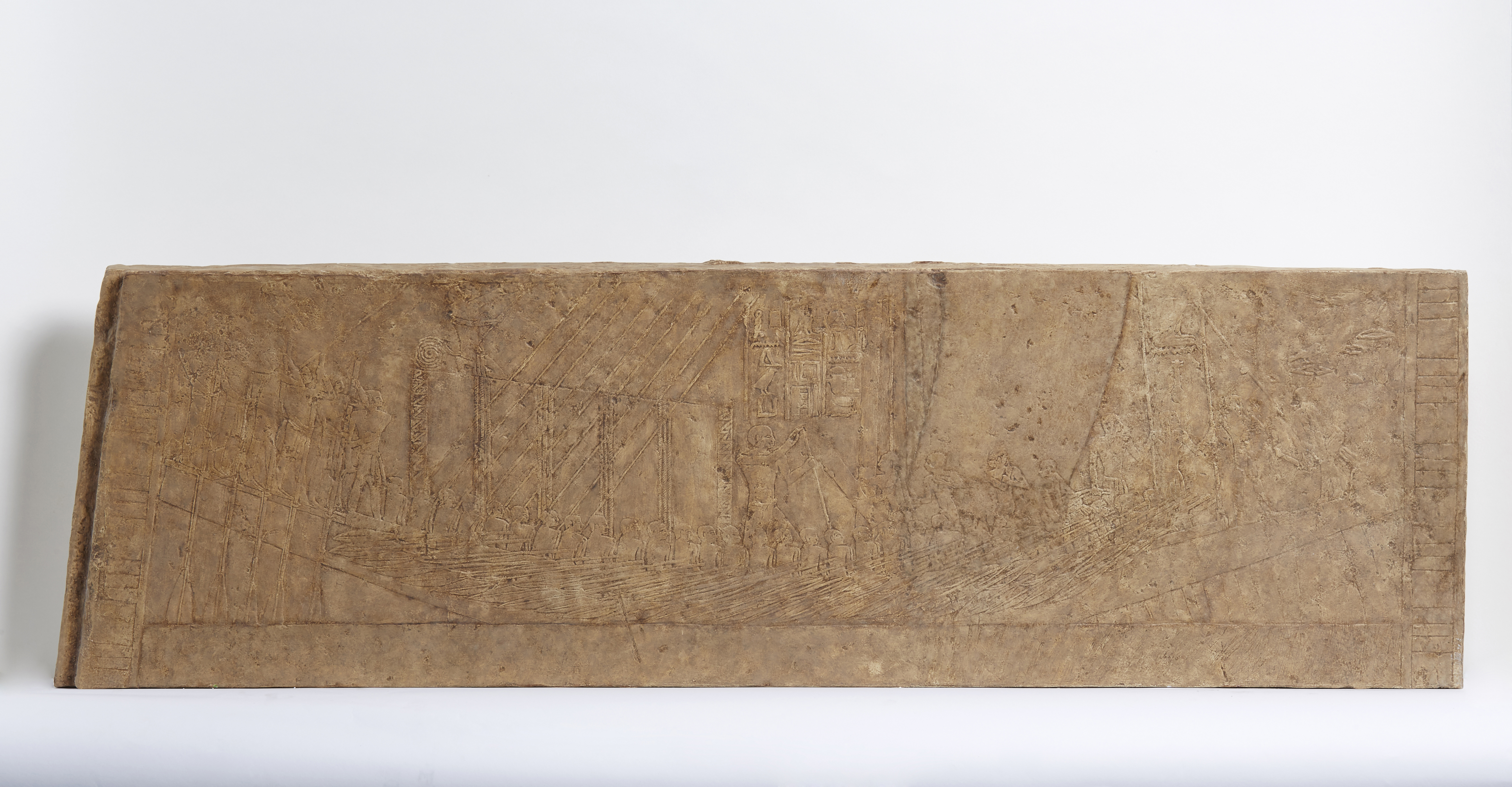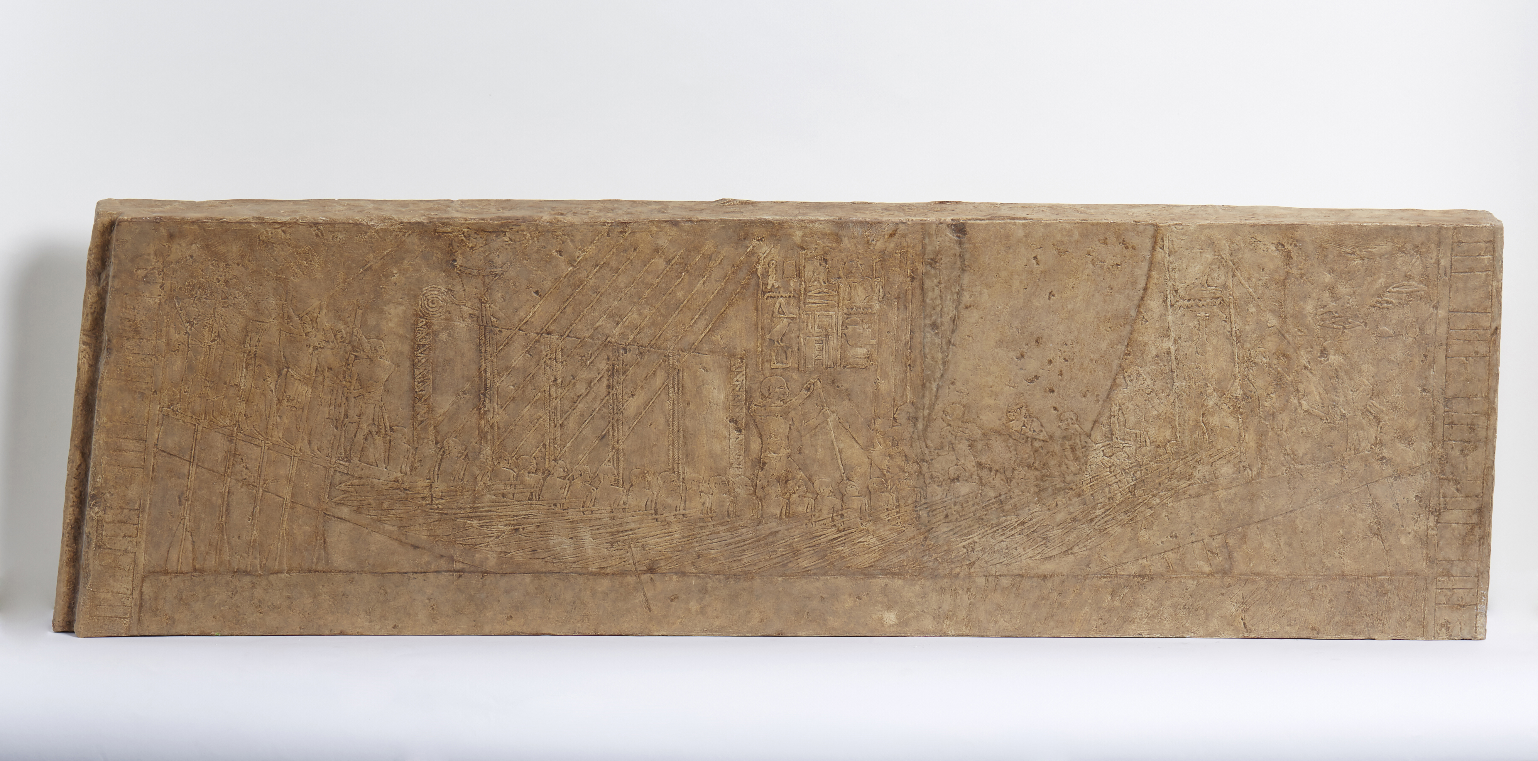 Das faszinierend detailgetreue altägyptische Relief zeigt ein großes Segelschiff samt Besatzung: Dieses lässt sich von 30 Rudern antreiben und mit 5 Steuerrudern lenken. Doch sind die Ruder hochgenommen, da das Schiff im Moment der Darstellung segelt. Vorne ist der Kapitän mit seinem Stab zu sehen und auf der Kajüte steht ein Matrose, der das Segel bedient. Vor der Kajüte schließlich ist Pehenu-ka gezeigt, aus dessen Grabkammer das flach gearbeitete Relief stammt. Seine Schreiber erstatten ihm während der Fahrt Bericht.