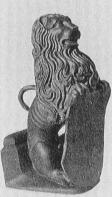 Objektinformationen "Stehender Löwe mit Wappenschild"