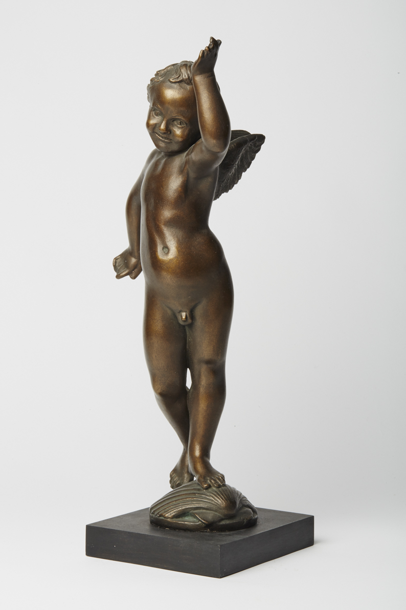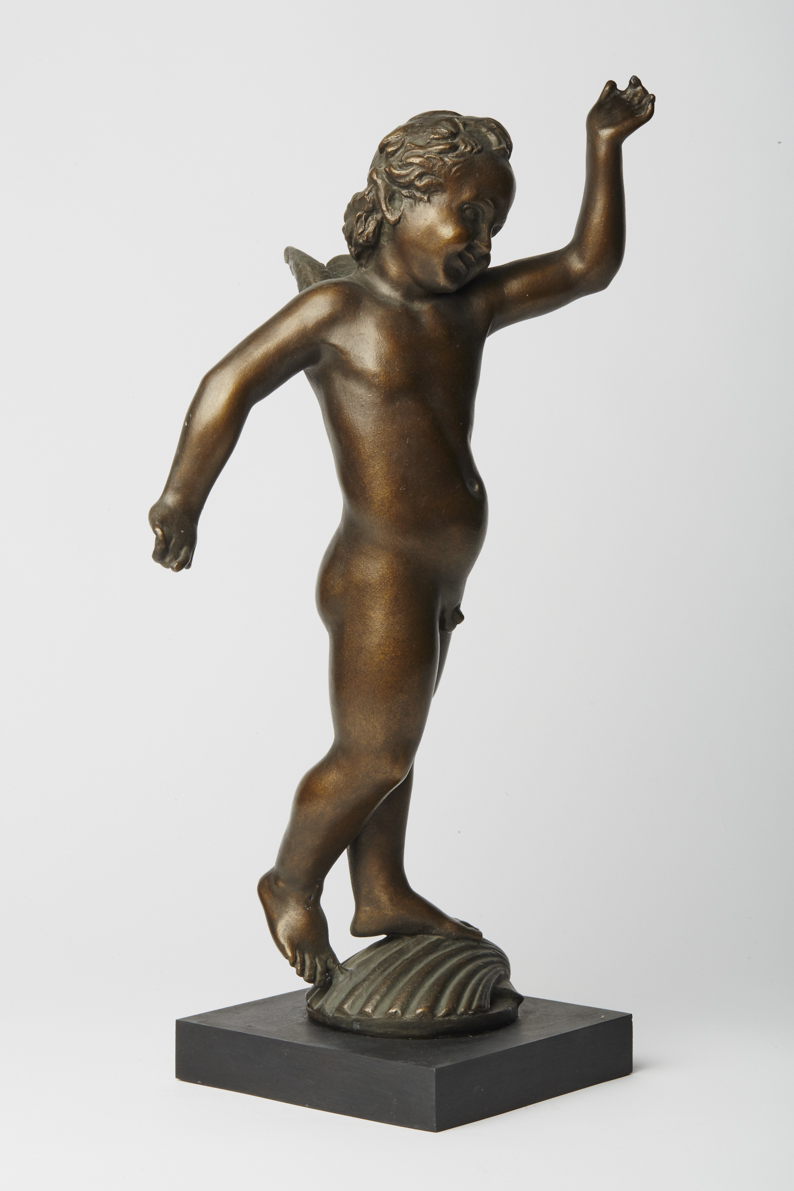 Der Tanzende Putto wurde im 19. Jahrhundert als einer der insgesamt sechs Bronzeputti am Taufbecken von Siena aufgefasst und Giovanni di Turino zugeschrieben. Entsprechend war der Abguss dieses Puttos seit der Abformung 1876 immer auch Teil des Abgusses des gesamten Monuments. Heute wird der Putto als verworfenes Werkstattmodell Donatellos interpretiert, das in Zusammenhang mit den drei anderen für das Taufbecken geschaffenen Putti entstanden sein dürfte. Das sanfte Antlitz, die entspannte und zugleich bedachte Pose und die gefiederten Flügel gelten als typisch für den großen Meister.