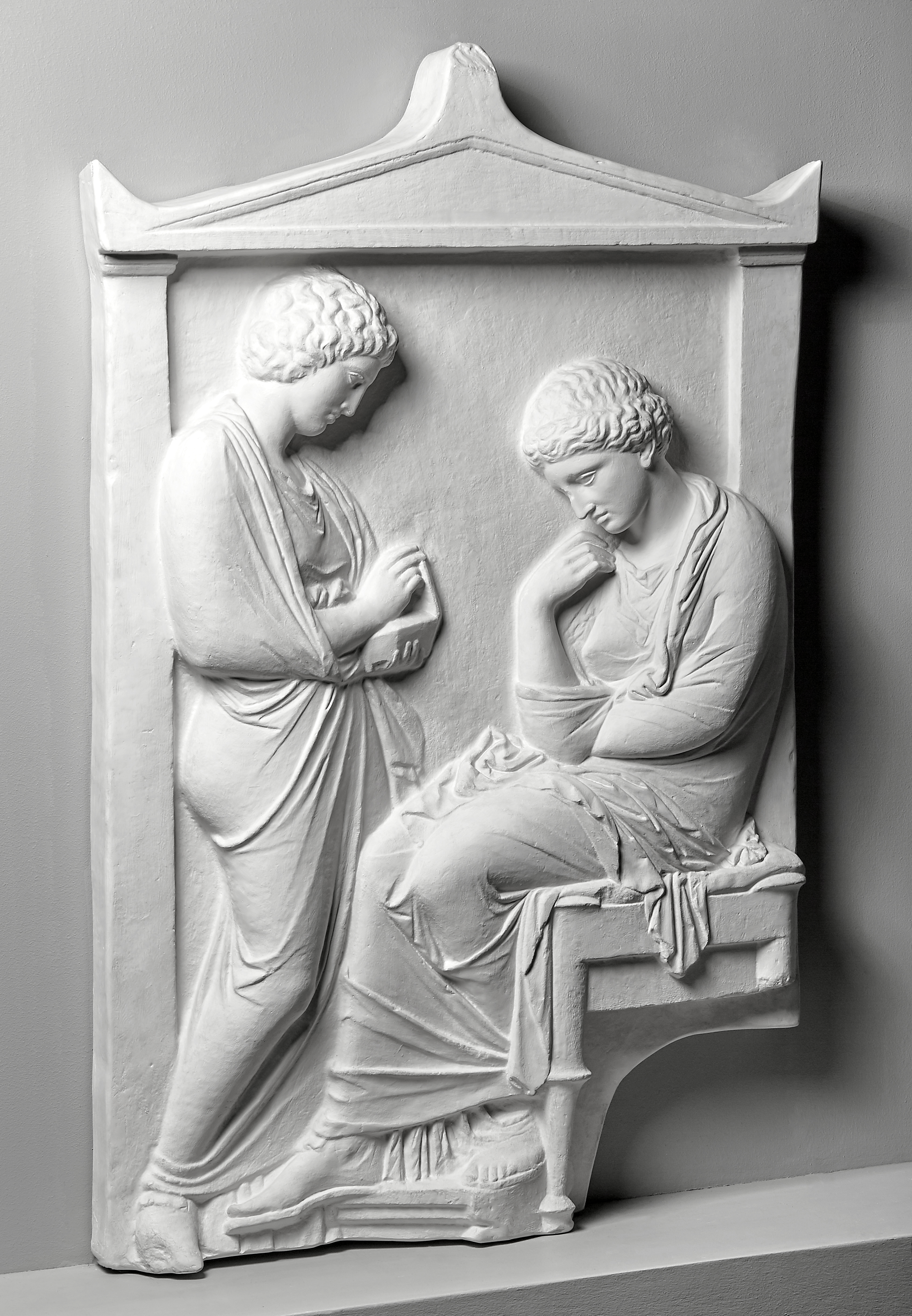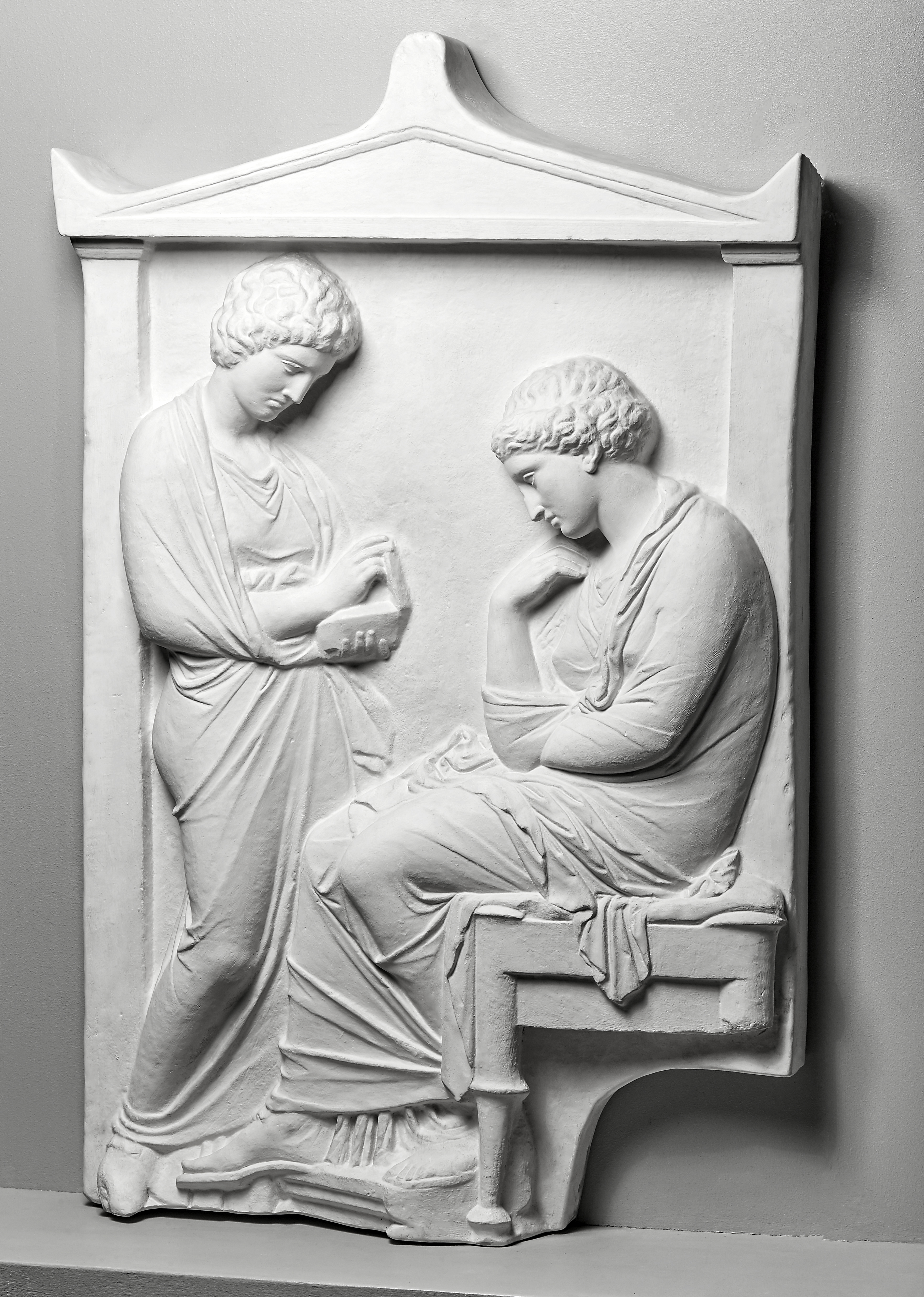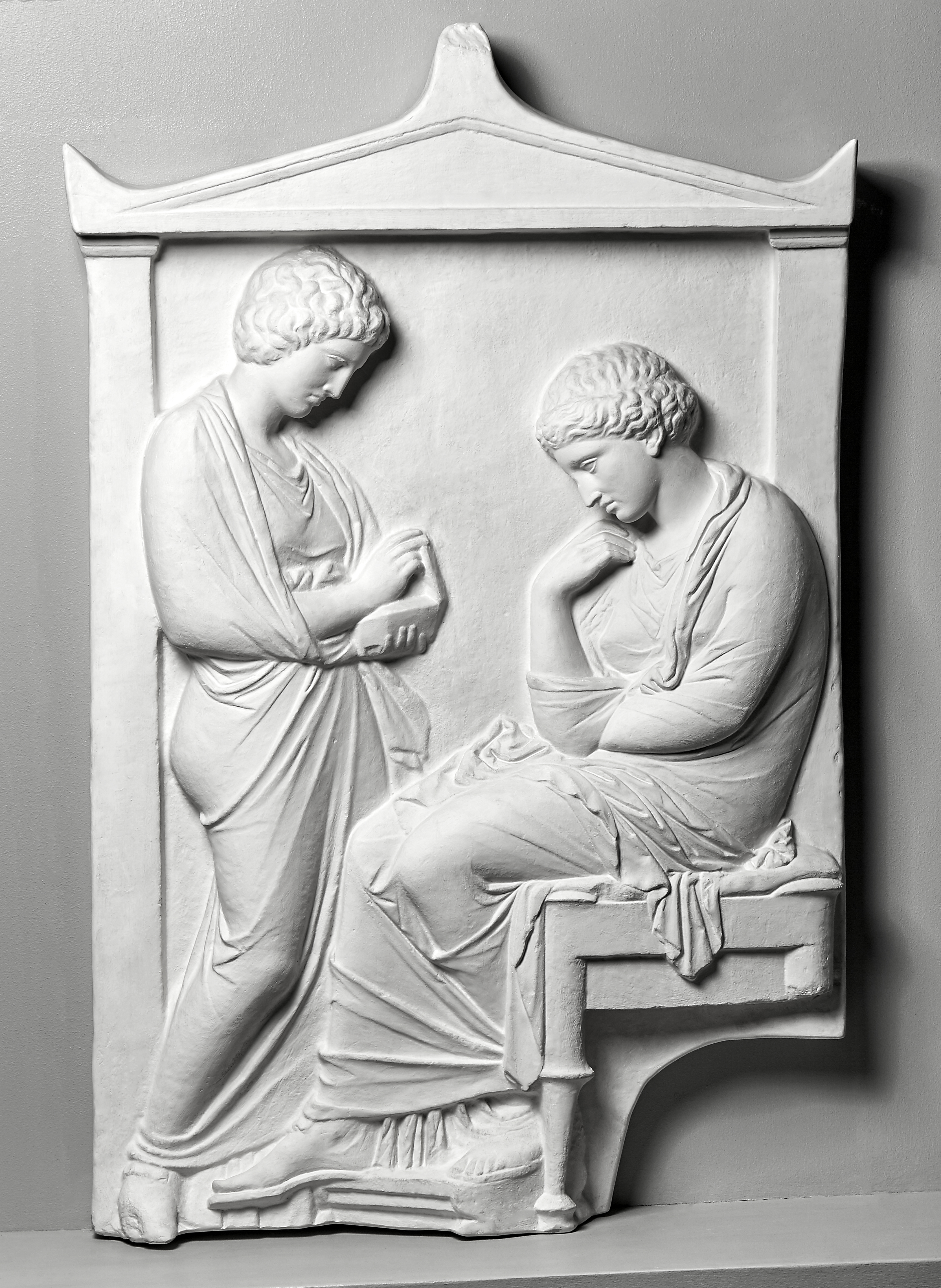 Object information "Funerary Relief depicting a Seated Woman and Servant"